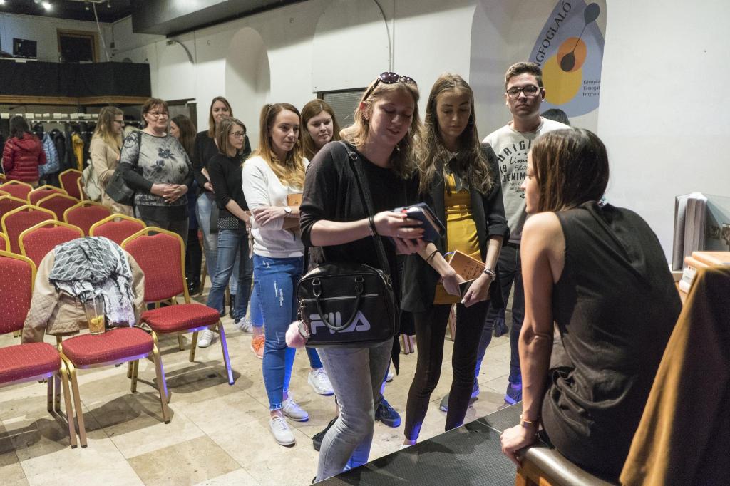 A “Nincs időm olvasni kihívást” Ági 2017-ben indította, elmondása szerint azért “hogy megmutassuk, igenis van idő az olvasásra, még ha csak napi 5-10 percet szánunk is rá”. Sajnos én csak az idei évben fedeztem fel ezt a nagyszerű kezdeményezést. Ezért is kapva kaptam az alkalmon, hogy elmehessek az előadásra. Az egész beszélgetést nagyon élveztem, érdekes témákról folyt a társalgás, többek között az olvasás szeretetéről, ki, mennyi könyvet olvas általában, vagy melyik napszakban forgatjuk a köteteinket gyakrabban. Ági mindvégig nyitott volt a kérdésekre, melyeket akár Roland, a műsor vezetője, akár a közönség tett fel neki. Elmondása szerint neki a könyvek, az olvasás olyanok, mint másnak az evés, létfunkció. Mindig tart magánál könyvet, és minket is erre bíztatott, mert szerinte így is könnyebben kialakítható az olvasás rendszeressége az életünkben. Szereti az önfejlesztő köteteket, és azokat az olvasmányokat, aminek mondanivalója van, ami elgondolkodtató. Egyik nagy kedvence Edith Eva Eger-től A döntés című könyv, amit szintén elhozott bemutatásra.